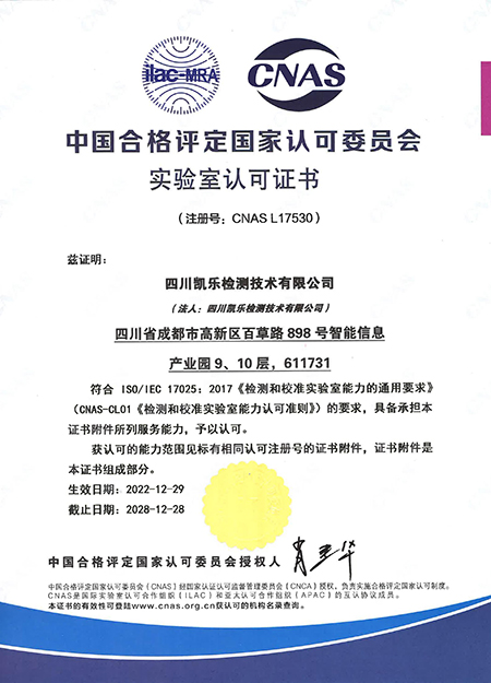 凱樂檢測認證集團具備檢驗檢測機構資質(zhì)認定(CMA)、實驗室認可(CNAS)資質(zhì),目前通過CMA的包括理化綜合、重金屬、農(nóng)藥殘留有機物、獸藥殘留有機物、微生物、物理、輻射等檢測指標近4000項,涉及環(huán)境檢測領域的水和廢水、環(huán)境空氣和廢氣......